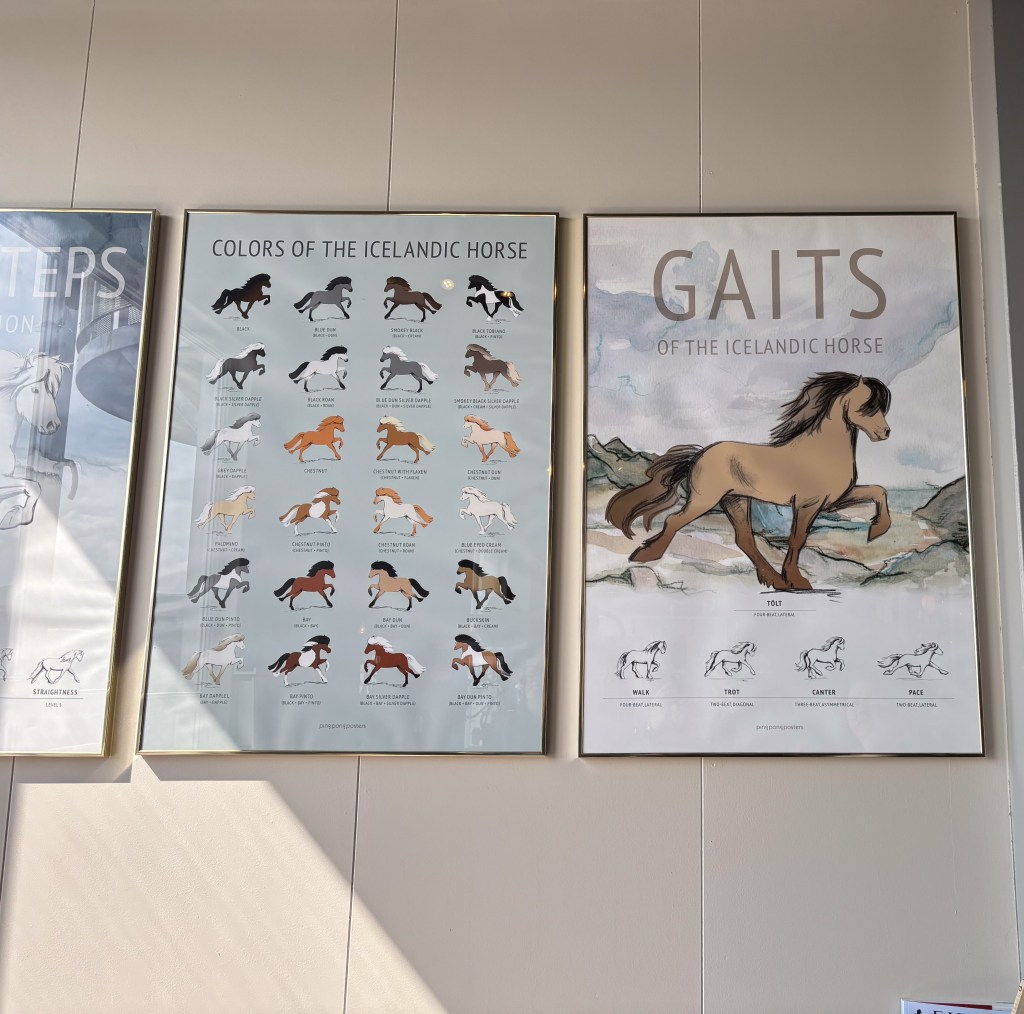 Our last day, on our way back to Reykjavik, we stopped at a place I found out about when we first arrived in Iceland—the Solvangur Icelandic Horse Center. The Icelandic Horse has been a trusted companion for Icelanders throughout history and I was fascinated with them from the moment I started reading about them upon arriving in Iceland. The Vikings brought their small Nordic horses with them in the 900’s. Due to isolation and strict rules, the breed has remained pure and has maintained its unique characteristics. They have become quite popular with equestrians throughout the world (about 2000 are exported each year), AND, once a horse is exported, it cannot return because of the strict rules. Despite its smaller size, the Icelandic horse is well known for being strong and hardy with great stamina and speed. It is surefooted enough to handle the rough Icelandic terrain and is renowned for its five gaits, including the unique “tolt,” a four-beat gait with light flowing movements, which is easy and comfortable to ride. The other gaits are walk, trot, gallop and flying pace.