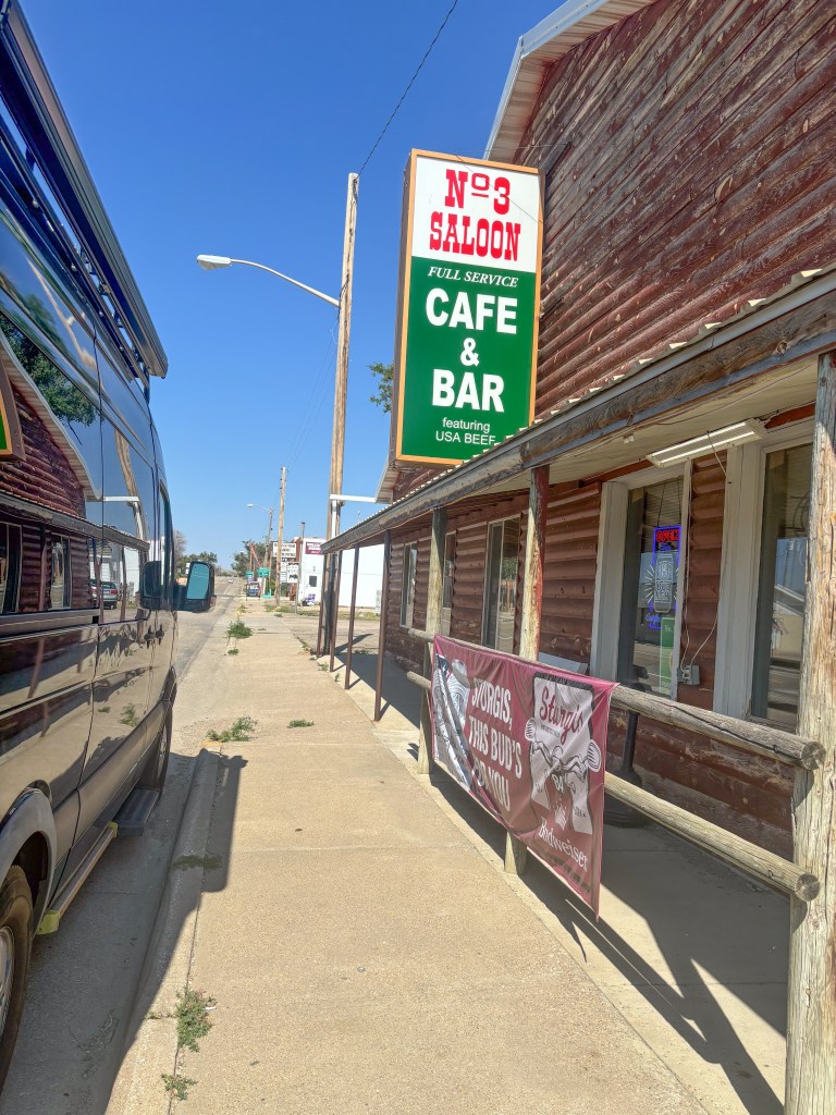 Our first stop in Minnesota was just east of Fargo, SD at the Buffalo River State Park Campground. For the first time, we were on Central Time (starting half way across South Dakota—one of 11 states whose time zones are split…very weird, but pretty easy to adapt to). We were more tired than expected after a long drive (including the Enchanted Highway detour)…and realized that the constant heat and perhaps the half-day of smoky skies were taking their toll. We did find a fun and fairly typical Saloon along the way (note our van parked just outside), with a sign that made us chuckle: