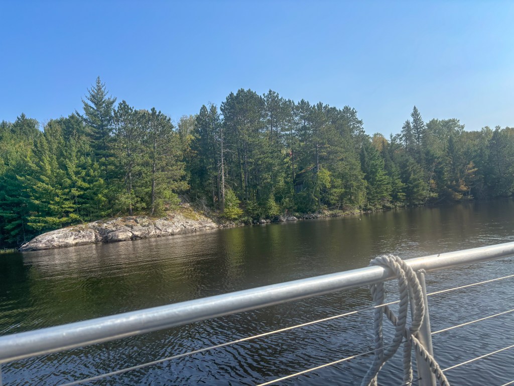 Named for the 18th Century trappers who blazed the watery trails through this region, Voyageurs National Park spans nearly 350 square miles and little of it is accessible by car. That’s why we signed up for a 5-hour boat tour, which was the perfect way to see and learn more about this remote and beautiful water wilderness area. 40% of the Park is water—80,000 acres—and it is on the edge of the Canadian Shield, with its exposed granite (2.7 billion years old!) and tree-lined shores—mostly white pine, spruce and ash, in the heart of Minnesota’s North Woods and also on the southern edge of the Borreal Forest. It reminded us of Georgian Bay, where we cruised across the top of Lake Huron in 2022. There are over 500 islands (mostly uninhabited) and it was quite beautiful, very relaxing and peaceful. Gary really took it in, declaring, “Nothing like being on the water!” Ahhhh, yes indeed!