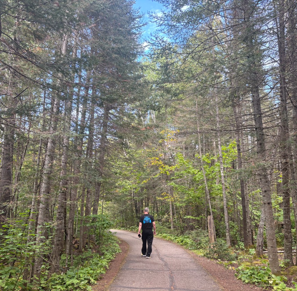 We spent 2 nights at Grand Marais on Lake Superior’s North Shore and took the North Shore Scenic Drive all the way up to the Canadian border and Grand Portage State Park where we walked through the forest to High Falls (120’—highest in Minnesota). We could hear the roar of the falls way before we got there! What a beautiful way to spend a morning!