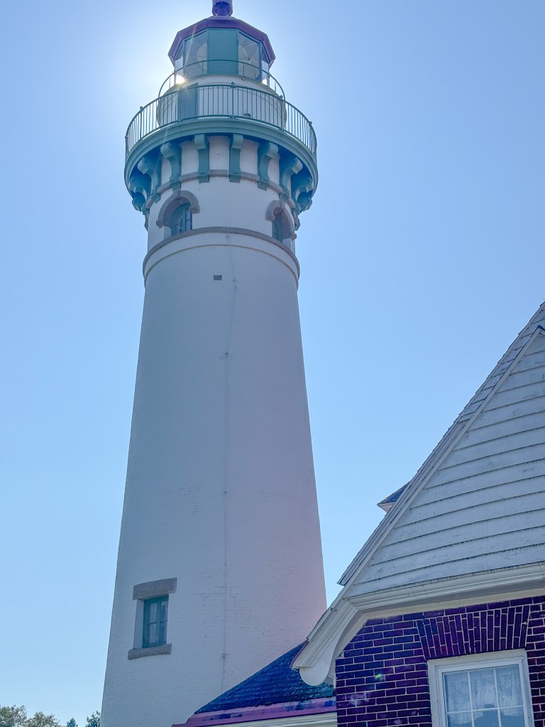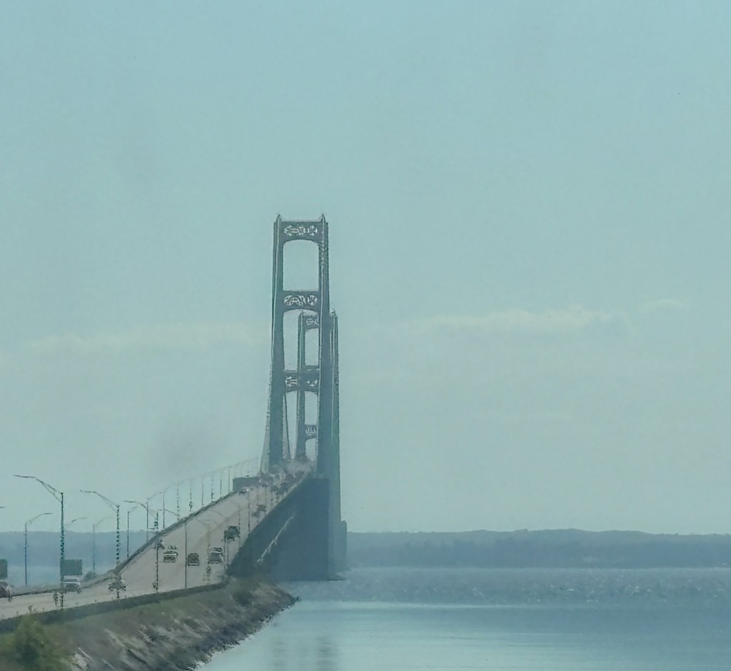 Driving across the Upper Peninsula (U.P. to locals, who also call themselves “Yoopers”) was a treat as we continued on mostly 2-lane “roads less traveled,” through lots of small, very rural towns, including Manistique, where we stayed on the north shore of Lake Michigan and enjoyed a walk on its sandy beach overlooking its lighthouse. (The beaches we saw on Lake Superior were mostly pebbled.) We visited the fascinating old Seul Choix lighthouse nearby (center) built in 1895 and pronounced “Sis Shwah,” meaning “only choice,”) where boaters sought refuge from a giant storm on the Lake. We also began to see wild turkeys and more monarch butterflies that migrate here each summer. It was very fun to drive OVER the Mackinac Bridge (that we had boated UNDER 3 times) that connects the Upper Peninsula to the main part of Michigan (aka “The Mitten”) as we made our way to the western shore of Lake Huron. We spent a night there before arriving in Ann Arbor. (We do like camping on lakes!)