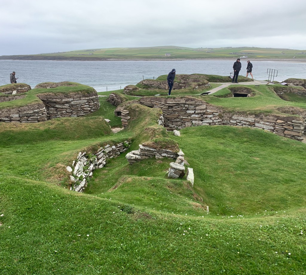 We then made our way east to the famous St. Andrew’s Old Course—the oldest and most iconic golf course in the world (established in 1552!). We ate in their club house (Gary posed outside) where I ordered a “Coronation Sandwich” that I’d seen on menus several times. It was originally created for Queen Elizabeth’s coronation—a chicken sandwich with a curried mayonnaise and currants. It was quite good! We then found our way to the 18th hole where there was a fabulous Pro Shop. I had forgotten how many golf tournaments we’ve seen on TV filmed at the very spots we were standing, overlooking the 18th green, its famous Swilcan Bridge and the North Sea. It was pretty impressive!